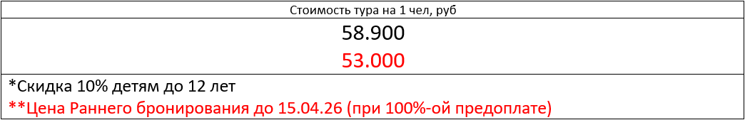 📍Отправление в 11:00 (время местное, МСК+4) в день старта тура