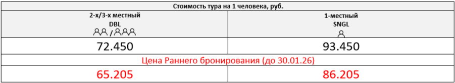 Встреча: в 12:00 - прибытие в туристический комплекс к 15:30 - 16:00