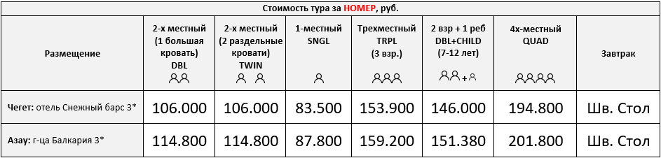 Размещение с завтраками в отелях и туркомплексах в Терсколе