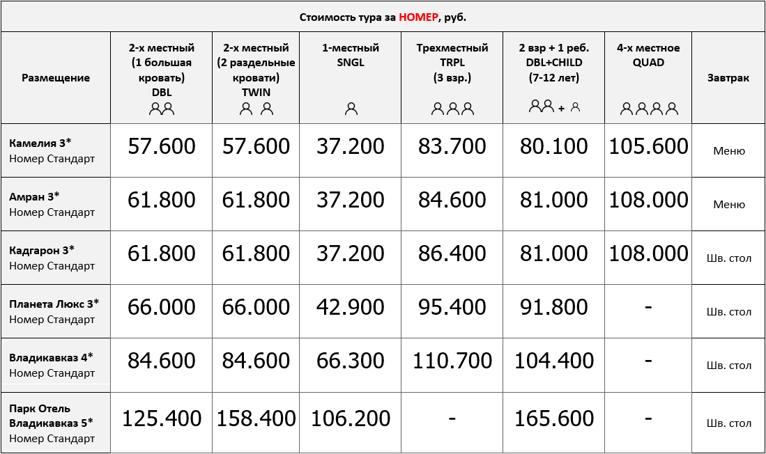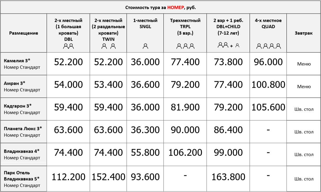 СТОИМОСТЬ ТУРОВ С ЗАЕЗДАМИ ПОСЛЕ 03.04: