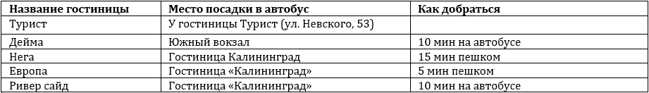 Прибытие в Калининград → Трансфер в отель → Заселение → Свободное время