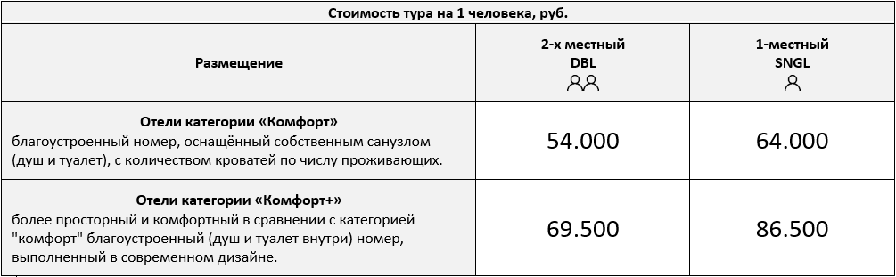 Дополнительные экскурсии и трансферы, не включенные в программу