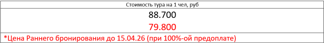 🚩Прибытие в 08:00 (время местное, МСК+4) через день после завершения тура