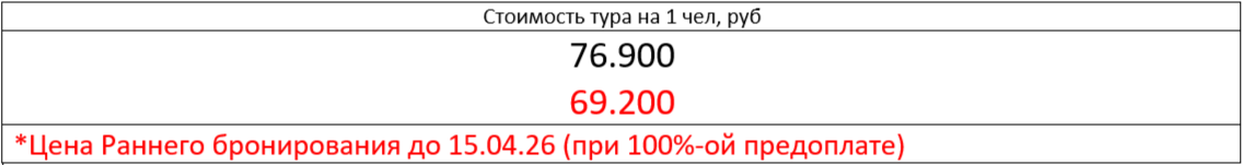 🚩Прибытие в 08:00 (время местное, МСК+4) через день после завершения тура