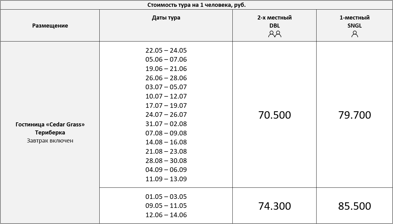 от 70 500 ₽ / чел. 74 300 ₽ / чел.
