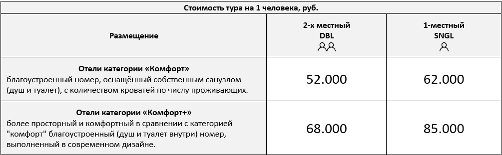 Дополнительные экскурсии и трансферы, не включенные в программу