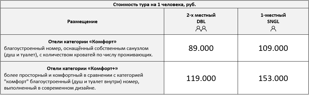 Дополнительные экскурсии и трансферы, не включенные в программу
